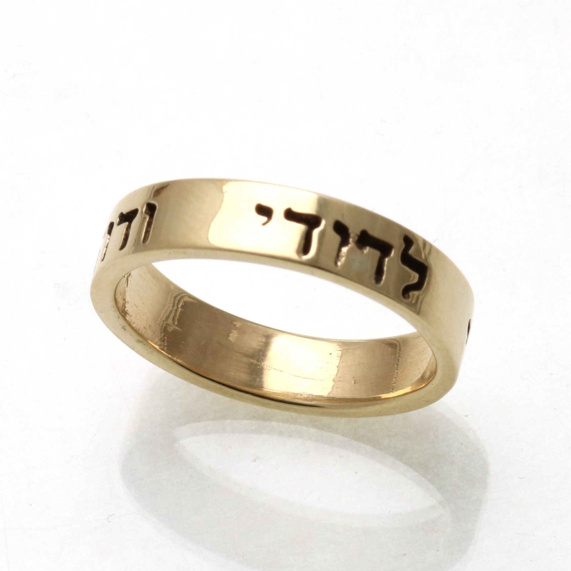 The most popular quote inscribed in a Jewish Wedding band is Ani Le Dodi V’ Dodi Li (see above). We also see Ze Dodi V’ Ze Rei (this is my beloved this is my friend) and Harei At Mekudeshet Li (Behold, you are consecrated to me).