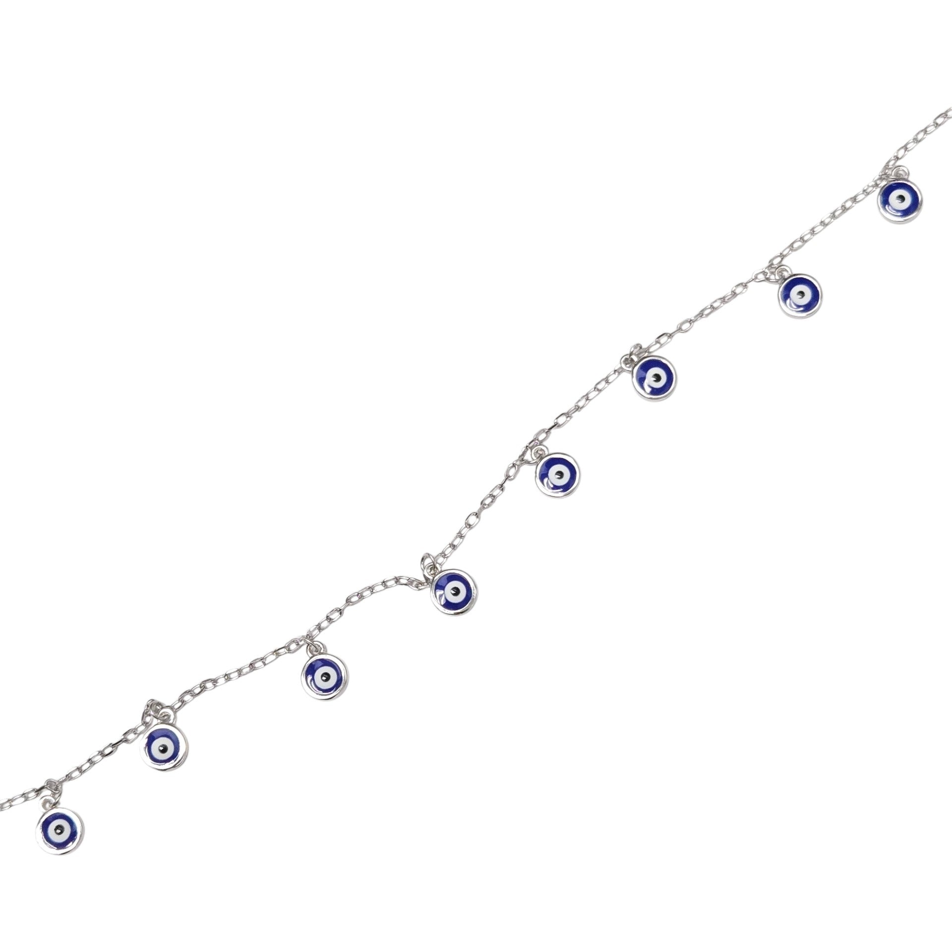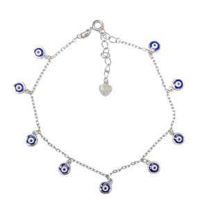 Sterling Silver Blue Evil Eye Dangle Bracelet